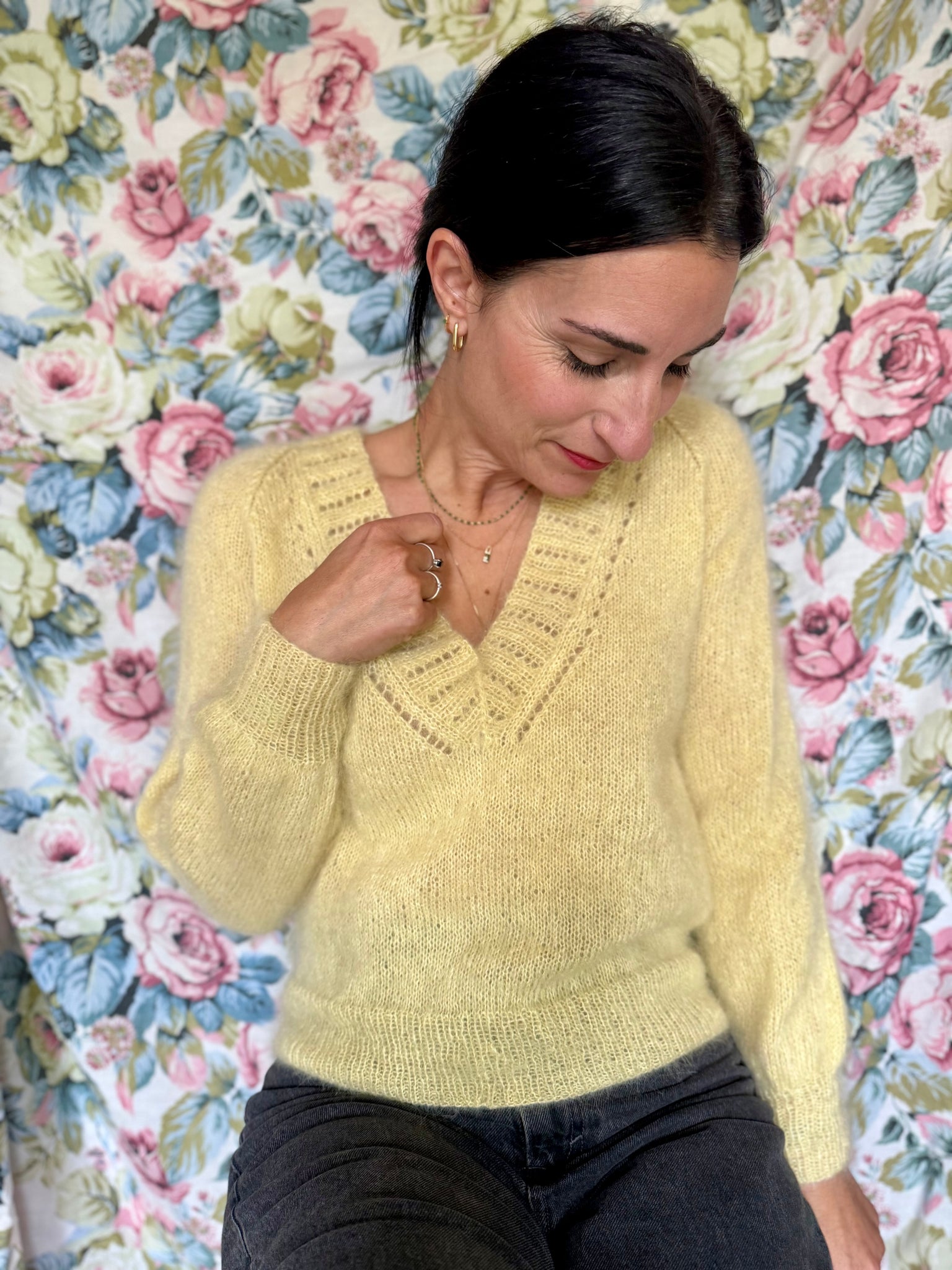 Pour Lucette, la chaleur du mohair et la brillance de la soie s'associent à merveille pour donner une pièce lumineuse.